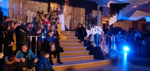 Гостей ночного театра драмы встретили темнота, звук лязгающих цепей и органа, что сразу создало атмосферу мистики и таинственности.