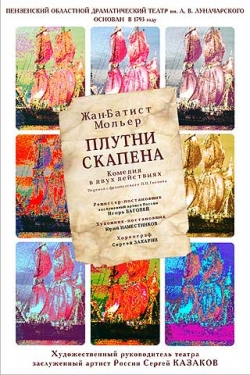 В постановке саратовского актера и режиссера Игоря Баголея старая пьеса заиграла новыми современными красками и превратилась в яркое остроумное зрелище — во многом сродни актерскому «капустнику». А сам Скапен, подобно своему автору и первому исполнителю роли — Мольеру, предстает на сцене руководителем и вдохновителем некоего «театра в театре», труппа которого и разыгрывает очередной вариант вечной истории «отцов и детей». Для художественного руководителя театра Сергея Казакова эта роль оказалась особенно близкой, тем более что в своей творческой биографии он уже прошел через роли скапеновских «потомков» — Фигаро и Труффальдино.